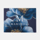 Paillasson Marine Blue Gold Elegant Floral Monogramme Nom de