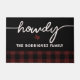 Offrez un grand Texas bienvenue à tous ceux qui viennent chez vous avec ce design. Le mot "howdy" s'écria dans une grande police manuscrite sur la forme d'état. Personnalisez avec votre nom de famille ou un message supplémentaire. Buffalo plaid combine les couleurs des écoles publiques avec le noir pour un look intemporel. Design disponible en orange brûlé, vert, rouge, violet, orange/marine, jaune, jaune/vert et marron. Fait un grand cadeau pour le ménage.