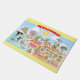 Une scène lumineuse et colorée offre une vue spectaculaire de la Californie du Sud - personnages farfelus sur la plage et le désert de SoCal présentant Los Angeles, San Diego, Orange County, Père Noël Barbara, Riverside, Palm Springs, El Centro, Anza Borrego et Joshua Tree parcs ainsi que les villes frontalières de Tijuana, Tecate et Mexicali. Cette scène pleine de charme a tout - un surfeur pend dix tandis qu'un orque saute de l'eau, des animaux zoo saluent les touristes, un mec musclé se met en place comme un T-Rex rugit un défi et un tank se met en position et bien plus encore...