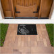 Tapis de porte avec une couleur arrière - plan noire et une maison hantée Halloween et papier à retaper sombre. Customisez ce tapis ou achetez tel quel.