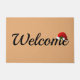 Le matelas de bienvenue est affiché dans un imprimé de chapeau santa de vacances. Couleur Tan Customiser ce tapis ou acheter tel quel.