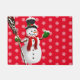 Tapis de porte avec une couleur arrière - plan rouge avec un joli imprimé de bonhomme de neige festif de Noël. Customisez ce tapis ou achetez tel quel.