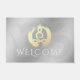 Yoga Studio Meditation Instructor / Life Coach / Healer / Reiki Master / Massage Thérapie Bienvenue Modèles - Élégante Calligraphie Faux Gold Foil Yoga Meditation Pose Facile / Sukhasana Pose avec symbole ZEN sur OM Symbole Argent Floral Damask Arrière - plan.
