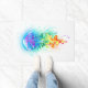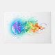 Grande méduse irisée, artistiquement dessinée, brillante, avec de longues tentacules sur le blanc, peinte sur l'arrière - plan multicolore. Méduse arc-en-ciel.