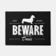 Ce design audacieux blanc-sur-noir permet à vos visiteurs de savoir ce qu'ils affrontent avant de mettre le pied dans votre maison. Doté d'une silhouette d'un Dachshund À poils durs avec le texte : Attention : Patrouillé par Doxie. Très amusant et un look propre pour votre porche ou votre tablette avant. Vient en deux tailles et de nombreux choix de race!