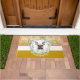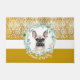 Attention au chien, texte personnalisé - aquarelle français bulldog sur l'été inspiré, beau dégradé marron, sable damast motif et blanc rayé arrière - plan dans le tapis de courre fleurie par PiccoGrande pour les amoureux français, mamans de chien et papas de chien pour le chauffage au foyer ou toute autre journée ou occasion.