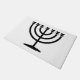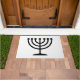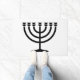 Ce dessin illustre une menorah, utilisée par les Juifs pour célébrer les huit jours fériés d'Hanoukka. La menorah est un chandelier à neuf branches qui est allumé pendant Hanoukka. Huit des neuf branches ont des lumières (bougies ou lampes à huile) qui symbolisent les huit nuits du jour férié ; chaque nuit, une lumière de plus est allumée que la nuit précédente, jusqu'à la dernière nuit, les huit branches sont allumées. La neuvième branche tient une bougie, appelée shamash (qui signifie "aide" ou "serviteur"), utilisée pour allumer les huit autres. La menorah d'Hanoukka commémore, mais est distincte, la menorah à sept branches utilisée dans l'ancien Temple de Jérusalem