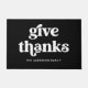Ce mat simple et boho dit "merci" en typographie blanche rétro sur un arrière - plan noir foncé, et est la façon parfaite de décorer votre maison pour vos invités Thanksgiving ou Friendsgiving.