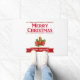 Bougie de Noël avec Joyeux Noël en rouge écrit au-dessus de la bougie et bannière rouge avec transparents Joyeux Fêtes ci-dessous.