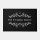Tapis de porte noir avec votre nom encadré par des demi-couronnes en miroir de feuilles et de baies. Ajoutez votre initiale et l'année où votre famille a été établie dans une police blanche élégante.