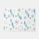 Un design rétro de l'ère atomique avec un thème de Noël. Il présente des flocons de neige argentés et des ornements de Noël turquoise et vert menthe.