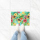 Paillasson Mix-fruit tropical, fleurs et feuilles en bleu