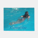 Modèle femelle aux cheveux noirs nageant dans une belle mer bleue à customiser, personnalisez en changeant de nom