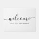 Tapis de porte avec le mot "Bienvenue" dans le script de calligraphie moderne et que vous pouvez personnaliser avec votre adresse de rue tout contre une couleur arrière - plan modifiable (cliquez sur personnaliser pour changer) qui est parfait pour votre propre maison ou votre location, hôtel, bed and breakfast, etc.