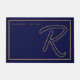 Paillasson Modern Navy Blue Gold Monogram Script Family Name
