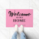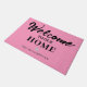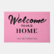 Paillasson Modern Pink Black Welcome Script Nom de famille