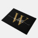 Tapis de sol personnalisé élégant moderne et féminin avec monogramme noir et or, nom initial script personnalisé. Ce design présente un prénom dans une jolie calligraphie à queue avec monogramme initial en or et blanc sur fond noir. Cadeau féminin élégant pour pendaison de crémaillère, également pour un anniversaire, un mariage, un enterrement de vie de jeune fille, un anniversaire de mariage, des jeunes mariés, une soirée entre filles et c'est pour la fille qui aime les choses minimalistes épurées.