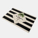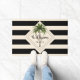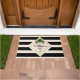 Élégez votre entrée de porte ou de patio avec ce tapis de porte Monogramme moderne Tropical Beach Palm Tree. Il s'agit d'un design élégant, avec des rayures noires et blanches arrière - plan et un palmier au centre. Le monogramme de famille initial est en gris clair et le nom de famille est en écriture calligraphie noire. Cliquez sur l'option Personnaliser le modèle et suivez les invites.