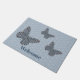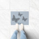 Les ailes et le corps d'un papillon monarque sont décorés de motifs inspirés des motifs sur des pulls que l'on trouve dans les pays nordiques de Norvège, Suède et Finlande, avec des motifs comme des flocons de neige, des montagnes et des arbres à feuillage persistant en blanc, bleu, vert et gris aux accents rouges vifs. Customisez le texte sur ce tapis de porte pour créer une décoration personnalisée pour votre entrée.