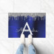 Argent et Marine Blue Faux Parties scintillant à étincelles métalliques brossé Monogramme en métal Nom et mat initial de la maison. Cela rend le cadeau parfait pour 16 ans, mariage, douche nuptiale, anniversaire, baby shower ou bachelorette pour quelqu'un qui aime le luxe glam et les styles chic.