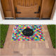 Visiteurs à votre maison avec cette couverture personnalisée de monogramme comportant un motif lumineux, heureux et très coloré des triangles d'arc-en-ciel. Customisez le noir et le monogramme des textes avec vos propres initiales pour un tapis d'entrée principale personnalisé vos amis et voisins aura plaisir à voir comme elles entrent dans votre maison.