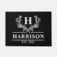 Accueillez vos invités avec une élégance intemporelle en utilisant ce mat de porte noir personnalisé. Le monogramme élégant, le nom de famille et l'année bien établie, tous affichés dans une police blanche immaculée, créent une entrée accueillante et personnalisée. Conçu avec des matériaux durables, ce tapis de porte est parfait pour ajouter une touche de sophistication à votre véranda ou patio.