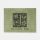 La première lettre de la lettre J de monogramme de calligraphie de typographie initiale décorative avec du charme de style dans le noir au-dessus de la doublure sage vintage de Livre vert avec outre du ginkgo biloba blanc part.