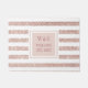 Tapis de sol personnalisé avec monogramme initial élégant, motif à rayures pailletées or rose avec vos initiales et nom de famille avec la date établie, dans un carré encadré avec une typographie classique or rose. Conçu par Thisisnotme©
