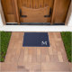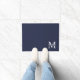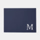 Monogramme personnalisé et cadeaux de nom avec monogramme blanc personnalisé dans le style de police serif classique avec boîte de nom au milieu du monogramme sur arrière - plan bleu marine.