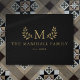 Paillasson Monogramme Floral Élégant Noir Et Or Nom de famill