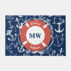 Bienvenue à bord ! Un motif nautique de différents types d'ancres de navire avec arrière - plan bleu marine et monogramme customisé encadré par une bouée de sauvetage. Conception de voilier été idéal pour les amateurs de plage, mer et océan. Naviguez en toute quiétude avec votre design thématique nautique. Cadeau de bateau idéal, décor de maison de plage, cadeau de capitaine de bateau, cadeau d'anniversaire, décoration de pépinière, chambre d'enfants, décoration de maison, cadeau de Noël ou cadeau pour toute autre occasion spéciale.