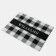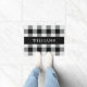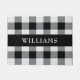 Cette natte noire et blanche classique de motif de contrôle de buffle a une bande noire à travers le centre avec un nom de famille en texte blanc. Personnalisez avec votre propre nom ou pour donner comme cadeau.