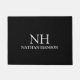 Tapis de porte d'affaires moderne avec un design noir et blanc simple et minimal avec votre monogramme en caractères gras avec votre nom.
