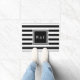 Tapis de sol à monogramme à initiales personnalisées élégant avec un motif à rayures noires et blanches. Personnalisez avec vos détails et choisissez la couleur de votre choix. Conçu par Thisisnotme©