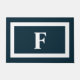 Éclairez votre porte d'entrée ou votre patio avec ce Monogramme Personnalisé Marine Bleu Blanc Première Porte. Il s'agit d'un design simple et moderne pour décorer votre porche ou patio de porte d'entrée et peut également être utilisé à l'intérieur. Il a une grande lettre blanche en gras sur le centre et un cadre de bordure blanche sur arrière - plan personnalisable bleu foncé.