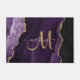 Ajoutez une touche de parties scintillant et de glamour à votre porte d'entrée avec cet élégant tapis de porte personnalisé avec un arrière - plan d'agate violet accentué de parties scintillant d'or faux rose. Personnalisez votre monogramme initial en calligraphie manuscrite avec votre nom ci-dessus. Conçu pour vous par des Tee - shirts extrêmes !