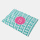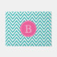 Porte en chevron blanc et turquoise moderne chic et tendance avec monogramme personnalisé dans un cadre en cercle rose chaud. Déplacez du texte, ajoutez des images, etc. en cliquant sur le bouton CUSTOMISER IT.