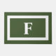 Éclairez votre porte d'entrée ou votre patio avec ce tapis de porte extérieur Monogramme personnalisé vert foncé. Il s'agit d'un design simple et moderne pour décorer votre porche ou patio de porte d'entrée et peut également être utilisé à l'intérieur. Il a une grande lettre blanche en gras sur le centre et un cadre de bordure blanche sur arrière - plan personnalisable vert olive.