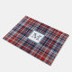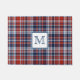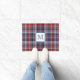 Monogramme mat de porte avec motif tatan rouge, blanc et bleu et votre premier encadré en carré blanc avec bordure bleue.