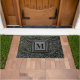 Personnalisez l'entrée de votre maison avec cet élégant tapis monogrammé de bienvenue en gris et noir. Le classique William Morris Larkspur motif est la base de ce design élégant surmonté d'un monogramme de style carré personnalisable. Ajoutez une initiale de famille pour un tapis de portes unique et accueillant.