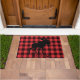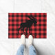 Tapis de porte rouge en plaid noir avec tapis de porte d'accueil en silhouette d'orignal. Pour votre cabine ou chalet.
