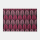 Paillasson dans un motif de papier peint Art déco vintage à base de plumes stylisées - rose fushia profond et rose doux, sur un arrière - plan noir