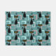 Motif de style abstrait coloré du milieu du siècle avec chat noir, étoiles noires et cubes colorés (bleu, blanc, rose) décoration sur arrière - plan turquoise pour chaque amoureux des chats, maman de chat et papa de chat.
