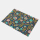 Caractéristiques de conception ce d'art populaire un rose, une orange et un motif floral turquoise sur un arrière - plan bleu-foncé.