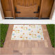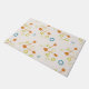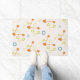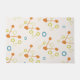 Cet motif abstrait d'inspiration ère atomique a des lignes et des cercles qui se connectent. Les couleurs sont vert chartreuse, orange vif, orange brûlé et bleu turquoise.