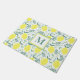motif botanique au citron avec une collection de citrons jaune canari brillants, feuilles acridiens composés en chute, gousses de graines et germes dans la chartreuse verte patina, bleu-vert et verdâtre. Assis sur blanc.
