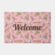 Vin rose. Bouteille, verre, tire-bouchon et raisins. Motif sans couture. Texte personnalisé.