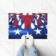 Ce tapis porte un drapeau américain sur lequel on peut le voir.