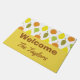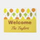 Personnalisez votre porte avec ce tapis de bienvenue pour Motif Feuille d'automne. Ce tapis présente un motif en feuilles vert, jaune et brun sur un arrière - plan blanc. La moitié inférieure a un arrière - plan bronzé avec imprimé brun affichant un exemple de texte "Welcome The Taylors" Ajoutez ceci à votre maison aujourd'hui! Oeuvre créée par : AMBillustrations http://www.etsy.com/shop/AMBillustrations/