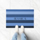 Motif moderne Blue Stripes Nom Personnalisé Porte mat.